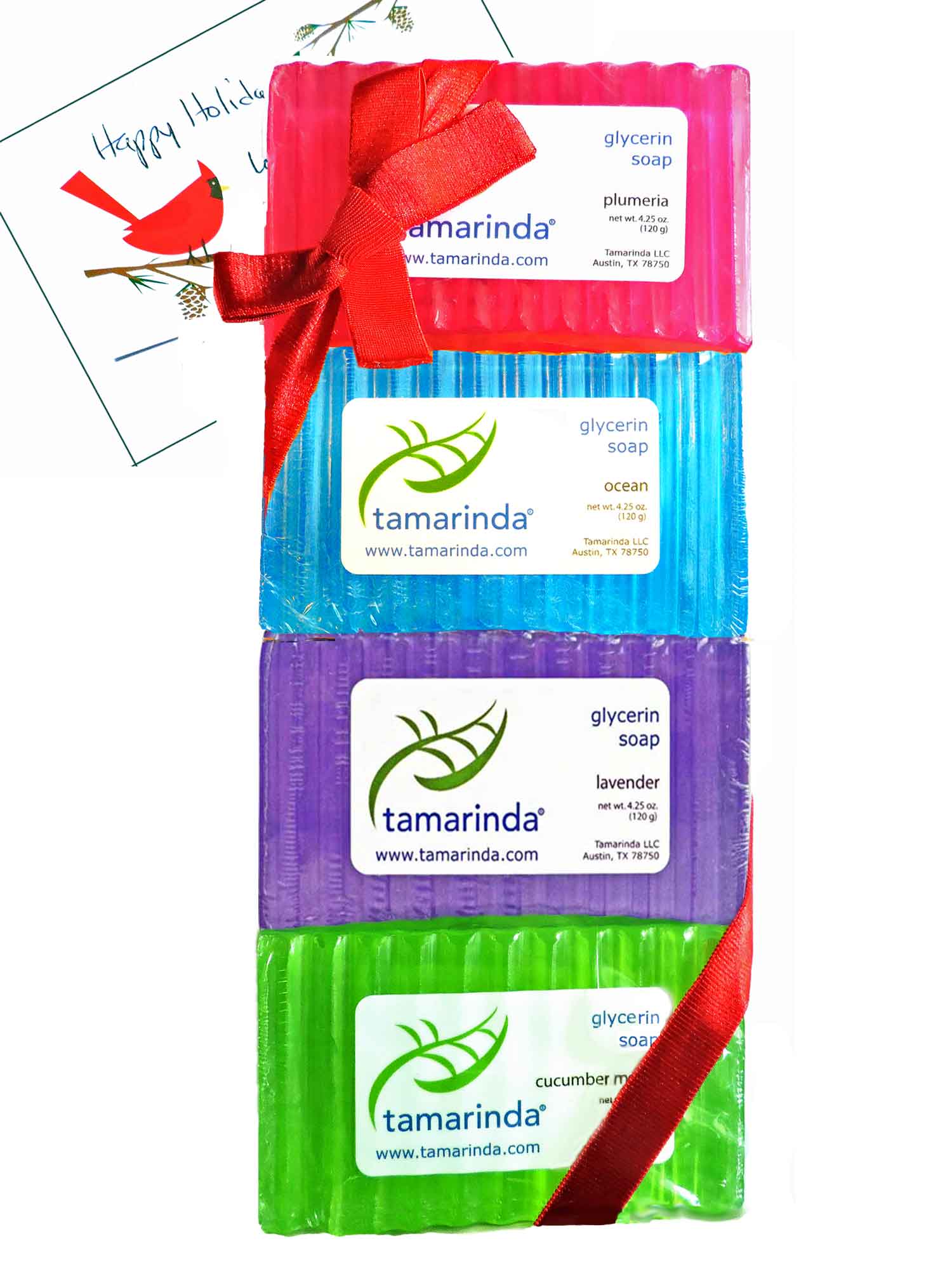 That's a lotta bars! This glycerin soap 8 pack gift will keep your soap lover in plenty of hydrating Tamarinda glycerin soap for months to come. If you love the pleasure (and benefits) of using glycerin soap, share them! Your family and friends will truly appreciate it (and you) every time they use it!